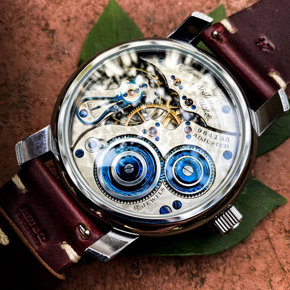 Howard 17 Jewel Conversion From 1910 Featuring Ruby And Sapphire Jewels With 14k Gold Jewel Settings Frett Co Clockworks